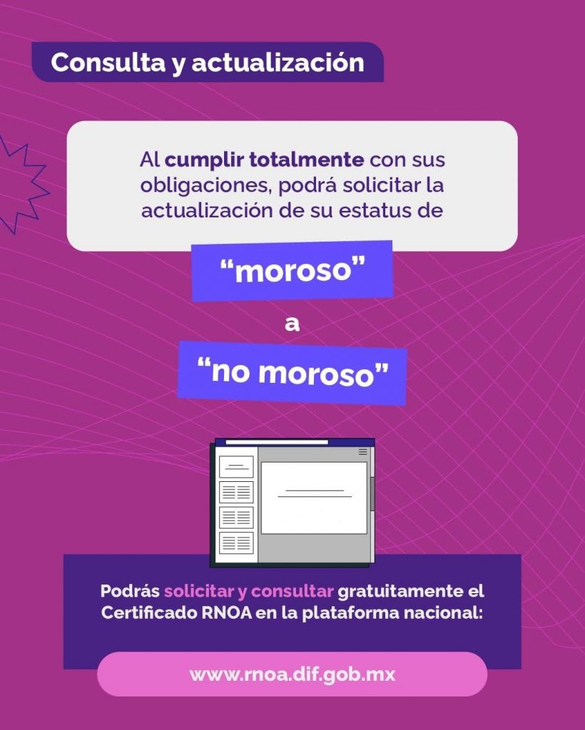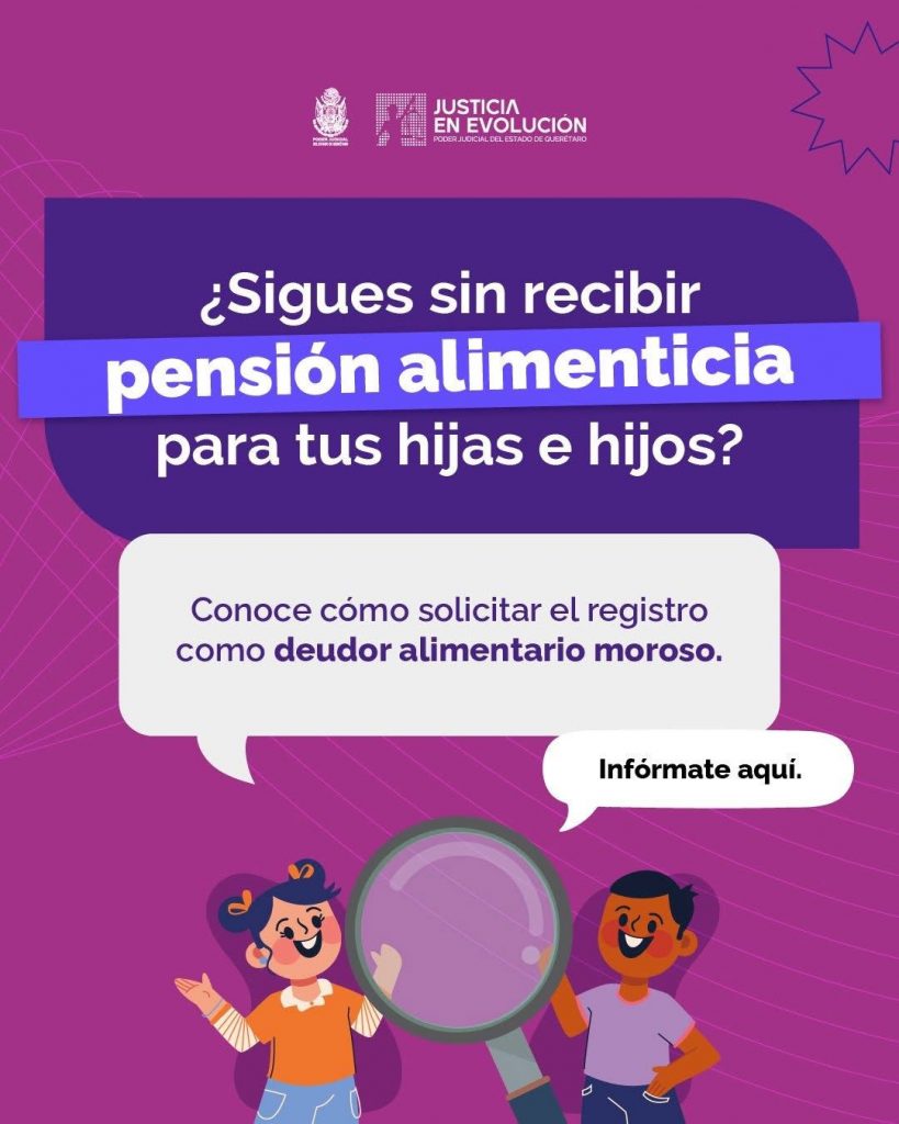 Si ya hay una pensión alimenticia decretada por un Juez o Jueza y el no cumple con su obligación de pago, puedes solicitar el registro como deudor alimentario moroso.
